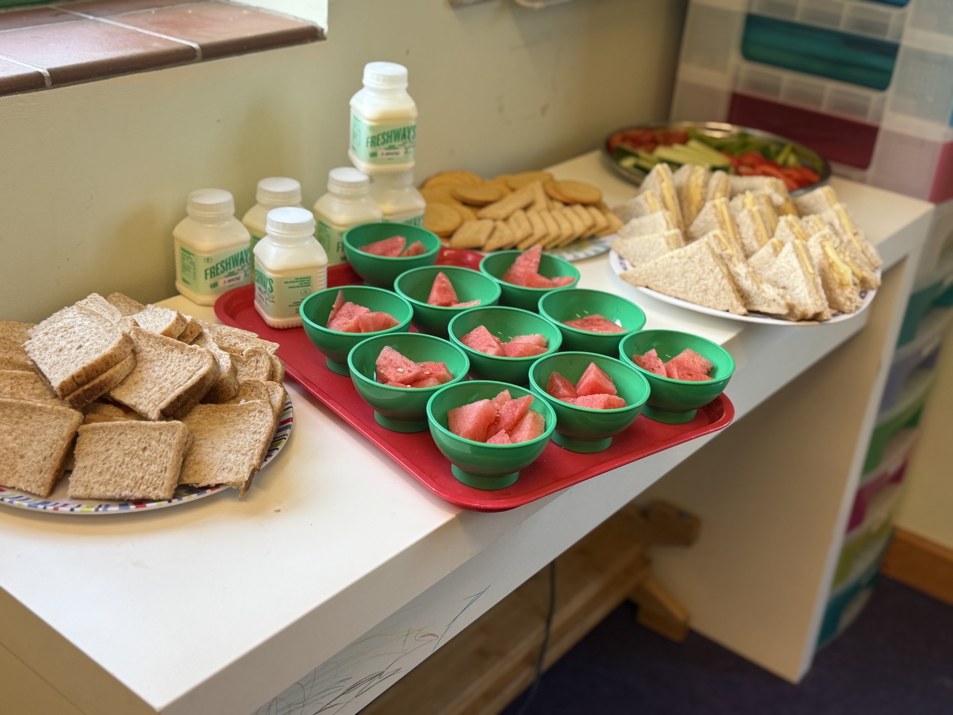 At the start of the afternoon, we provide the children with a choice of foods such as:• Toast and a selection of toppings (jam, spreads, marmite etc)
